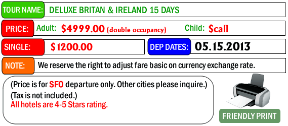 Arrival into London, afternoon visit Windsor Castle when time allow. |